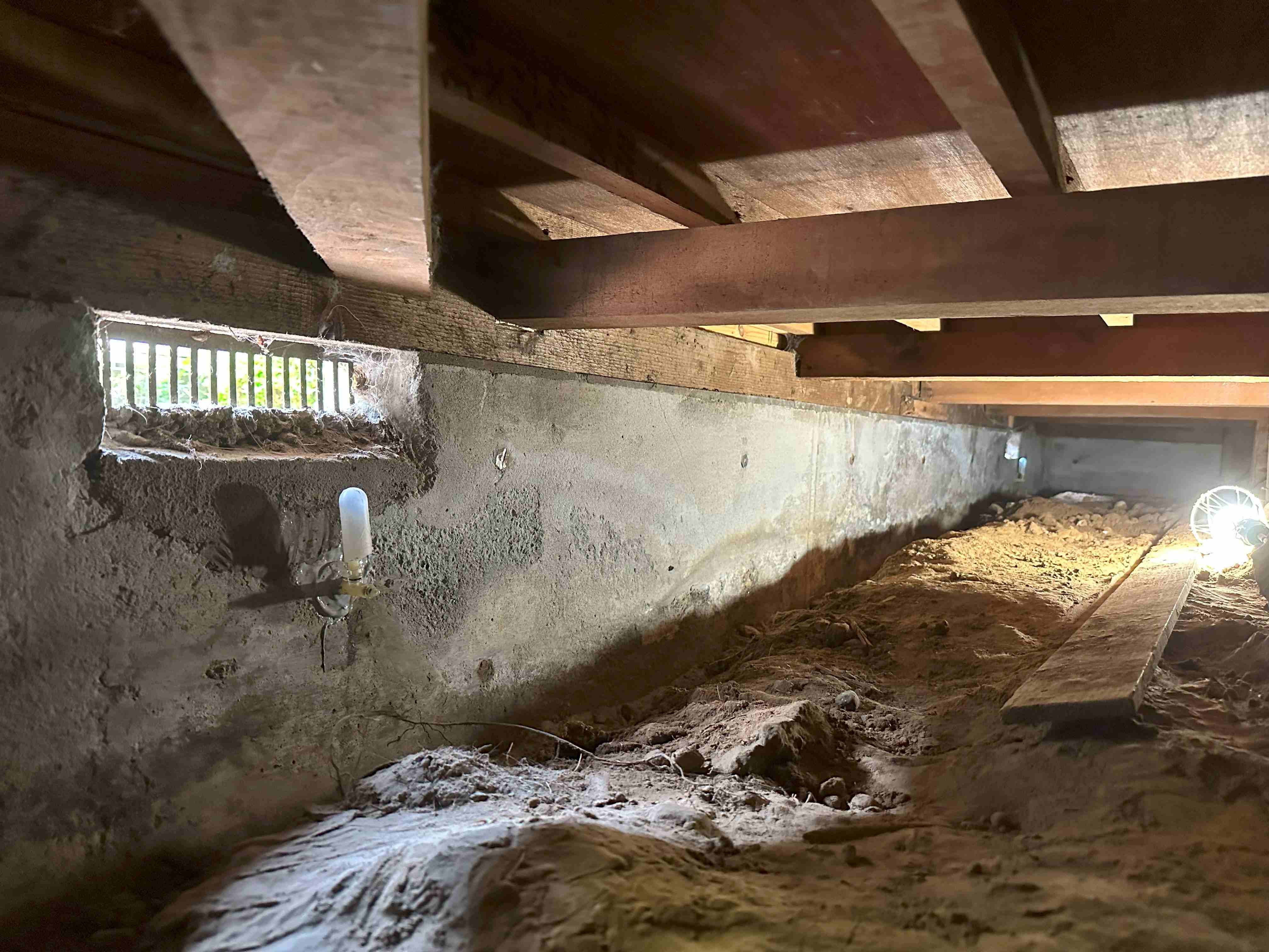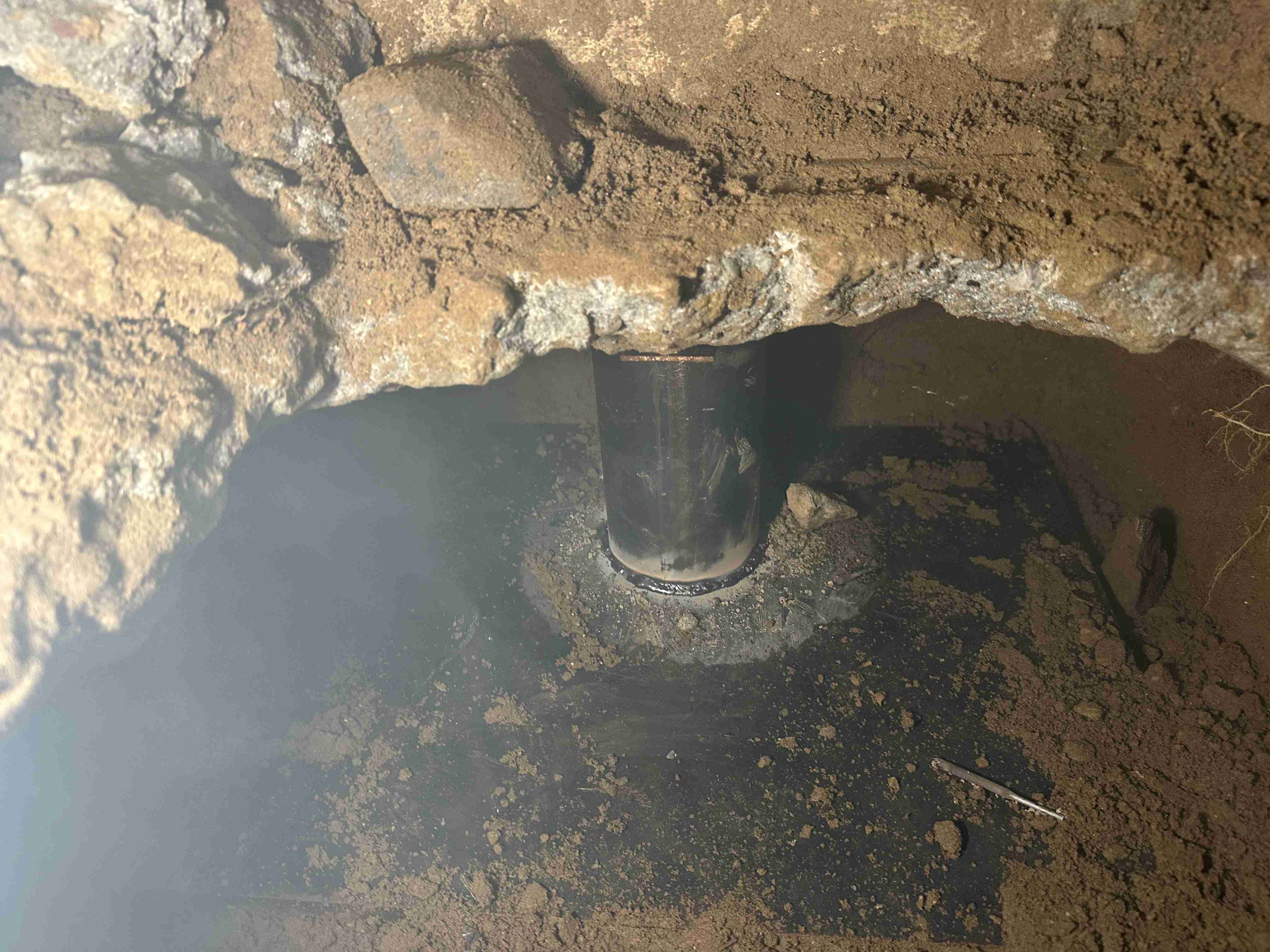 束石が見えなくなるくらい噴砂が床下で発生しています。