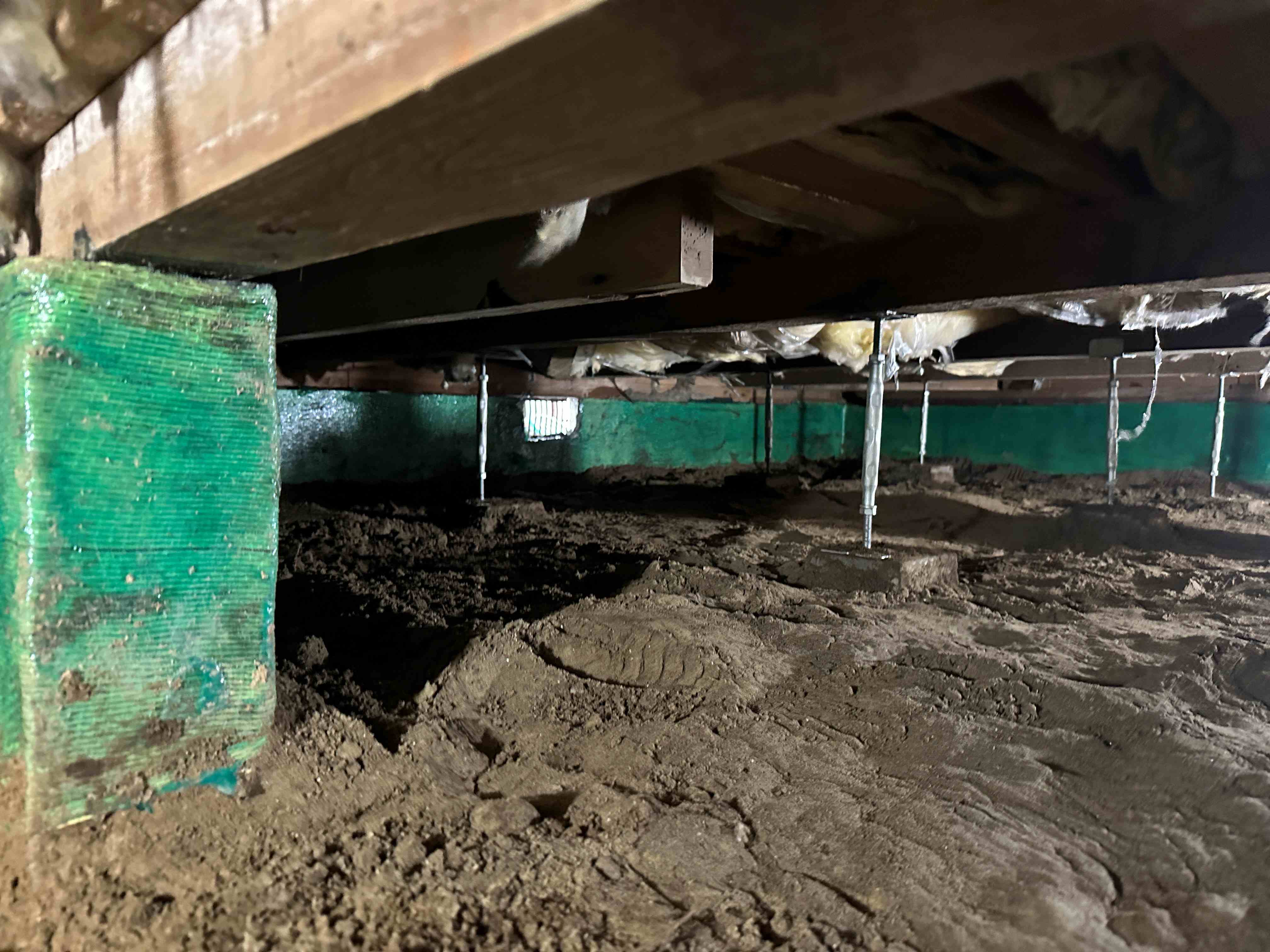 床下はアラミド補強と鋤取りをして床束もジャッキアップ量を計算すると入れ替えられたので