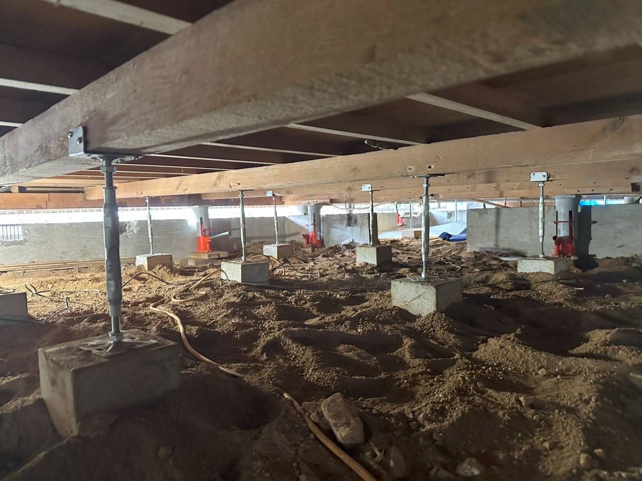 石川での土台揚げ沈下修正工事 神奈川県でマンションの排水管入替工事を施工してから石川県に向かいます。スラブ下を深さ1m掘削の後に2mの梁を超えるためにさらに深さ80㎝を掘削して梁越えトンネル掘削ですのでかなりハードな人力掘…
